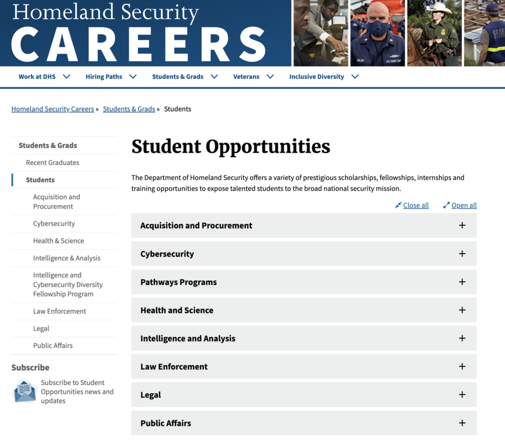 Visit website: https://www.dhs.gov/homeland-security-careers/students