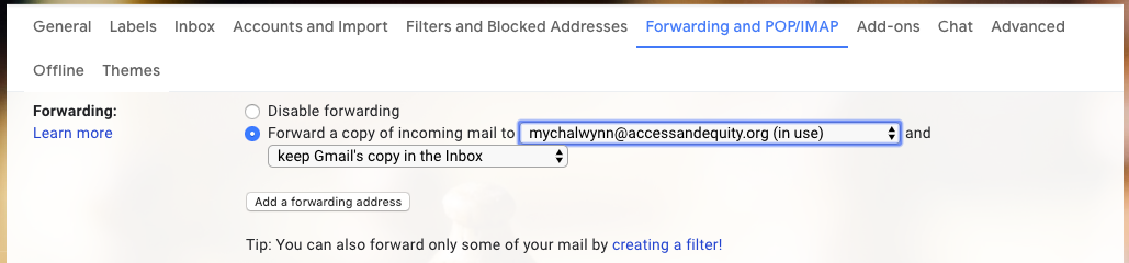 Note: If you are in a situation where you do not have a parent or mentor who can assist in monitoring your emails, then set up the Gmail address that you will use for our online program to forward to your personal email address.