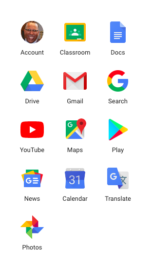 Clicking onto the matrix will reveal a menu of Google apps