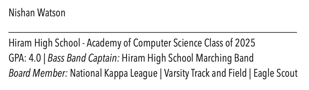- Enter one or two awards, or leadership roles on third line