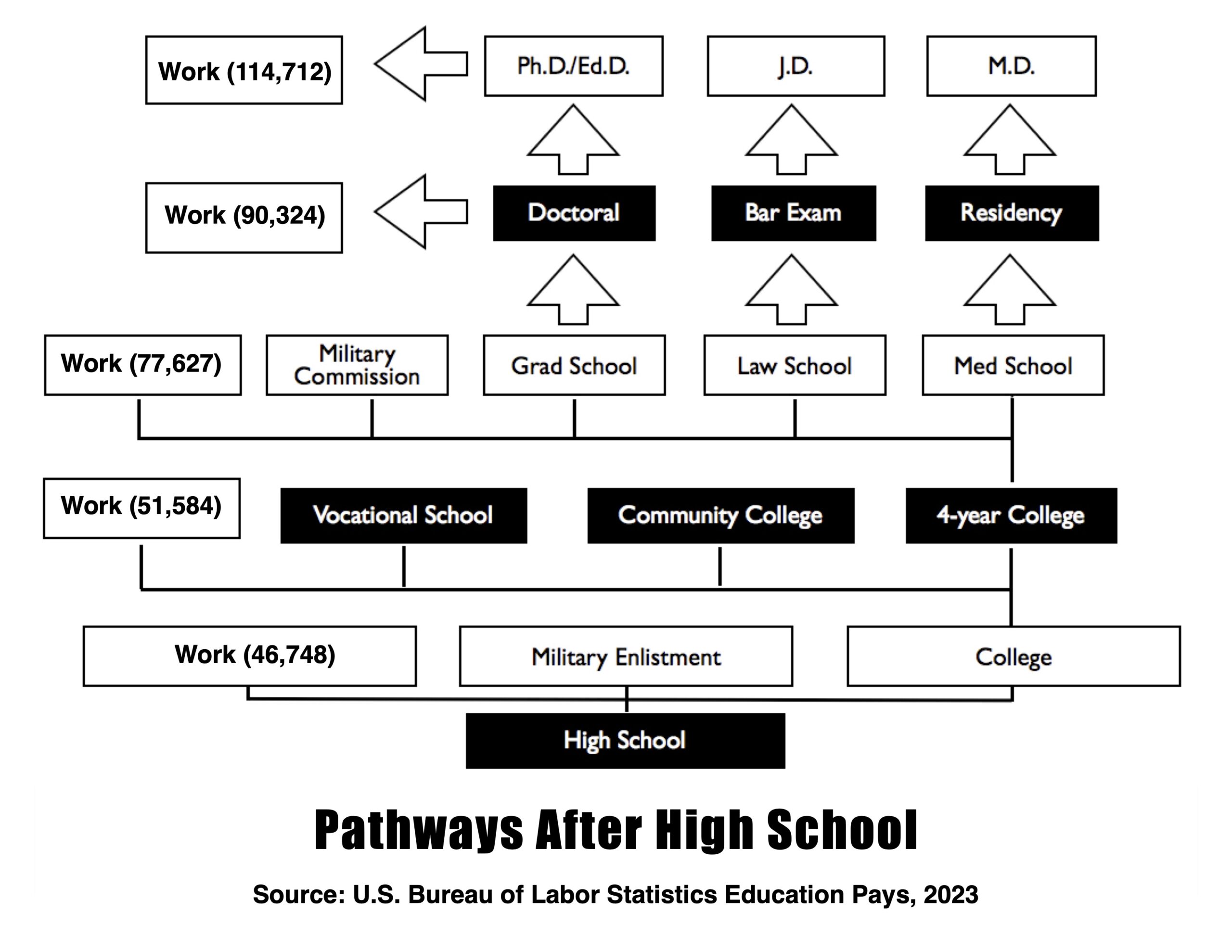 This book supports developing an Individual Graduation Plan as outlined in “Career or College Pathway – Individual Graduation Plan.” The book is jam packed with information to assist parents and students in maximizing the opportunities during middle school and high school to plan a student’s pathway into the workforce, military, or college.